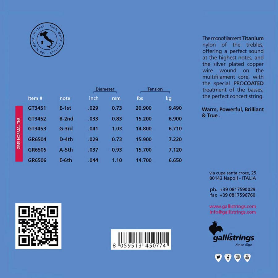 GR-45 |Galli Genius Titanio string set classic