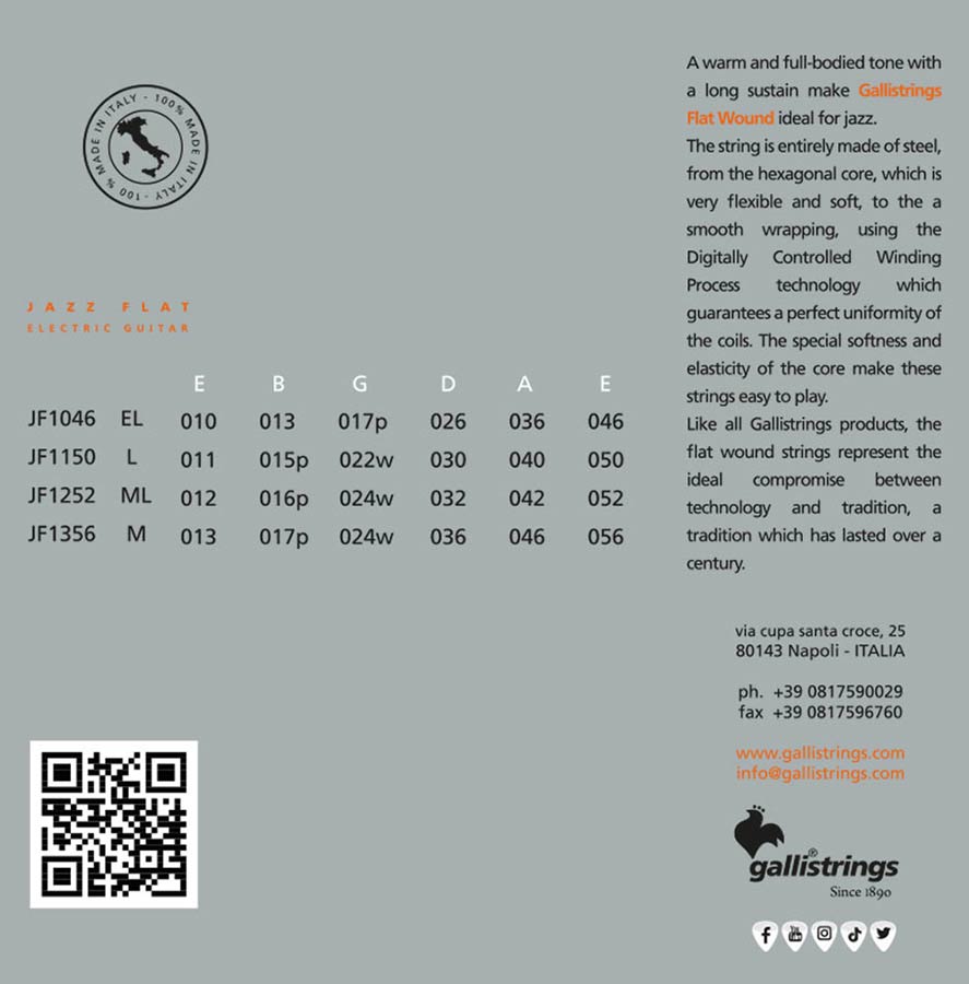JF-1046 |Galli Jazz Flat string set electric flat wound