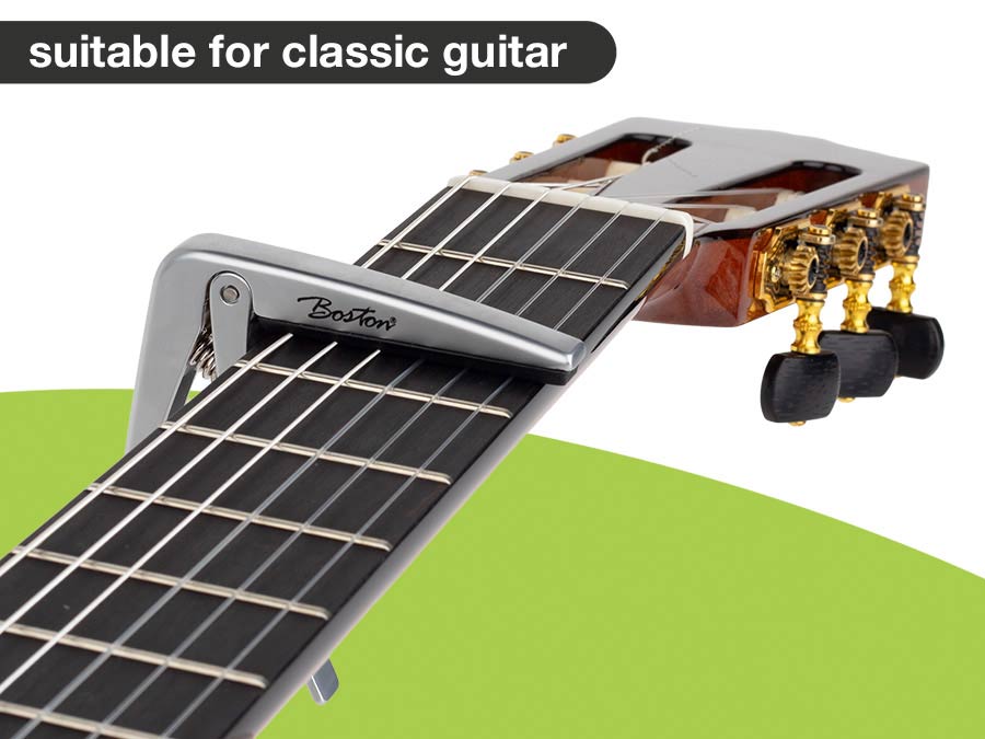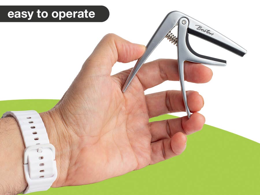 The Boston BC-85 capo is an essential accessory for guitar players. Not only does it transpose the open strings of your guitar, it can also be used to influence the tone colour.