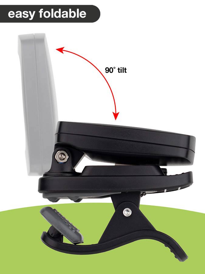 The BTU-150 turns on automatically when clipped on the headstock, and switches off when you remove it. When your instrument is in tune, the backlit turns GREEN. When it is sharp, the backlit turns RED, when it's flat the display will turn ORANGE. The BTU-150 tuner will switch off automatically when not used for 5 minutes. Built-in piezo sensor for accurate tuning.