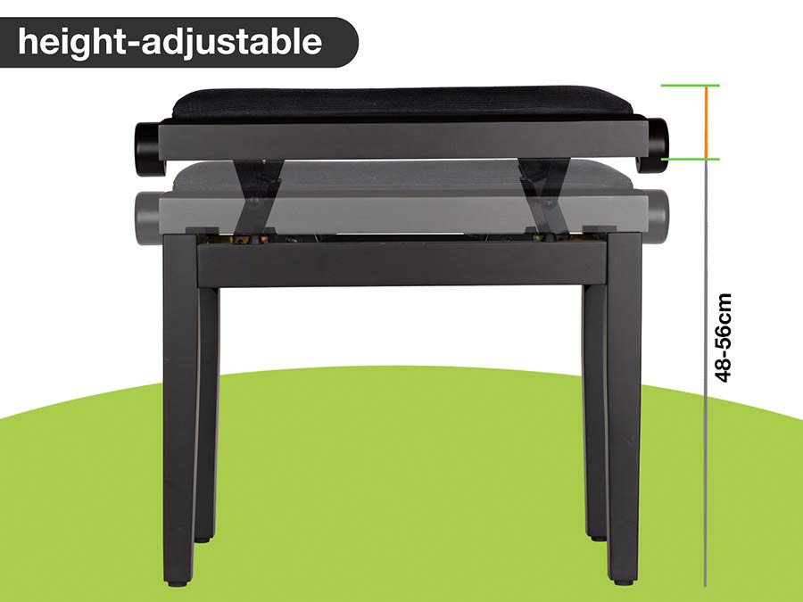 piano bench - adjustable seat (55,5x32,5x48-56cm), glossy black with black vinyl seat