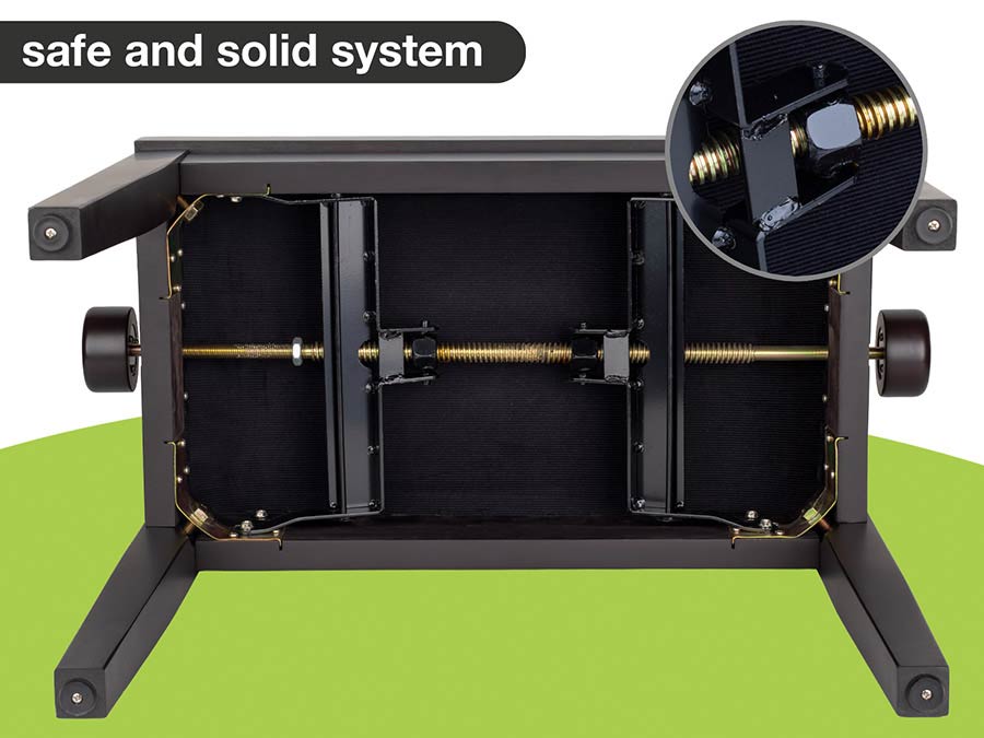 The Boston PB1 is a sturdy, height-adjustable piano bench with a comfortable seat and a very good price-quality ratio. It is available in black, white, walnut and rosewood.