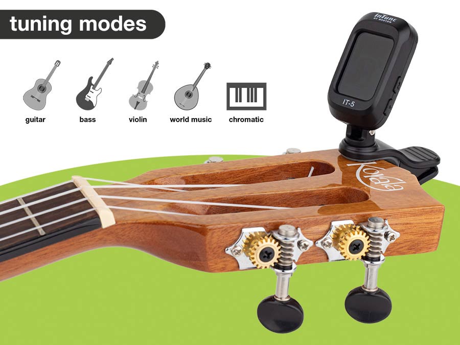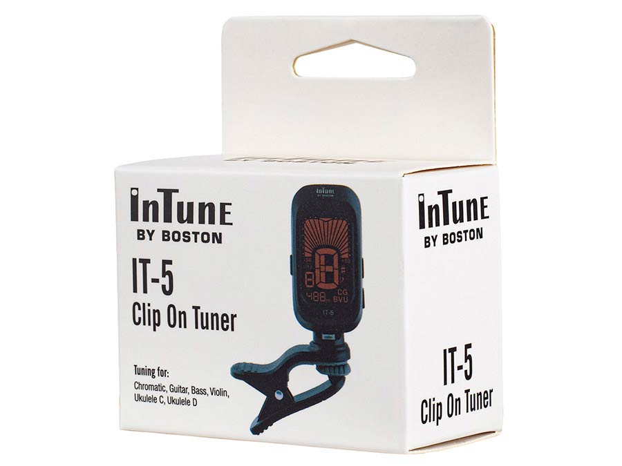 The Boston IT-5 is a very straightforward and affordable clip-on tuner which automaticly turns on when clipped on to the headstock and turns off when not used,
