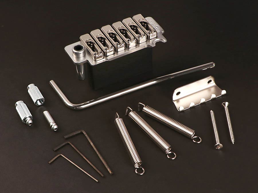 The Gotoh VS100Nis the ultimate in tuning stability. The 2 pivot points offer the best return-to-zero results. After using the fulcrum tremolo, the unit should return in exactly the same position as before to ensure the tuning remains intact. With the two hardened steel knife edge pivot points, the tremolo has least friction and will return to the initial position.
