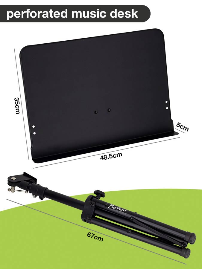 metal music stand, black, solid desk, desk size 48x35cm