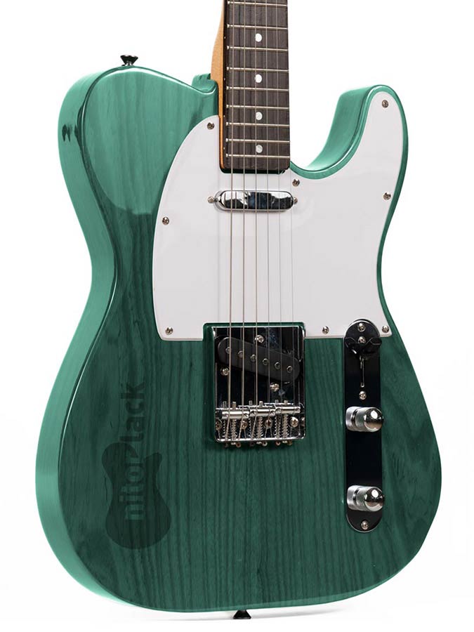 NitorTINT dyes for guitars are specially designed to change the colour of the wood with maximum transparency without altering the mesh of the natural wood. They are concentrated dyes with a double utility: they can either be diluted with a solvent to apply directly to the wood with a solvent or spray gun, or they can be used to colour the finishing varnish. They are universal stains that can be diluted in solvent, water or alcohol. In the case of application with a squeegee it is recommended to use water or Nitorlack Retard solvent. NitorTINT dyes are recommended to be diluted in a proportion between 3% and 10% depending on the type of application.