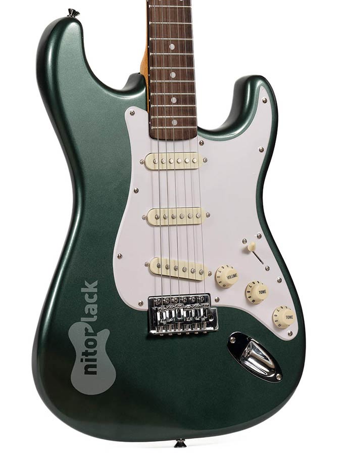 At NitorLACK we have developed all our guitar colours in spray format nitrocellulose so you don’t need professional painting equipment to paint your guitar. You can achieve a professional finish with our entire range of products, from coloured base coats from our entire range up to nitrocellulose top coat lacquers in gloss and matte.