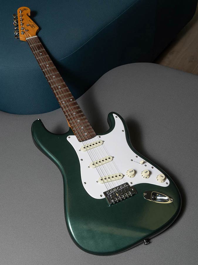 This is a somewhat rare pigmented solid metallic finish, inspired by the 1957 Lincolns in "Vermont Green". It was used by Fender between 1960 and 1965. As it is not a very common Fender colour, original guitars are highly sought after by collectors.