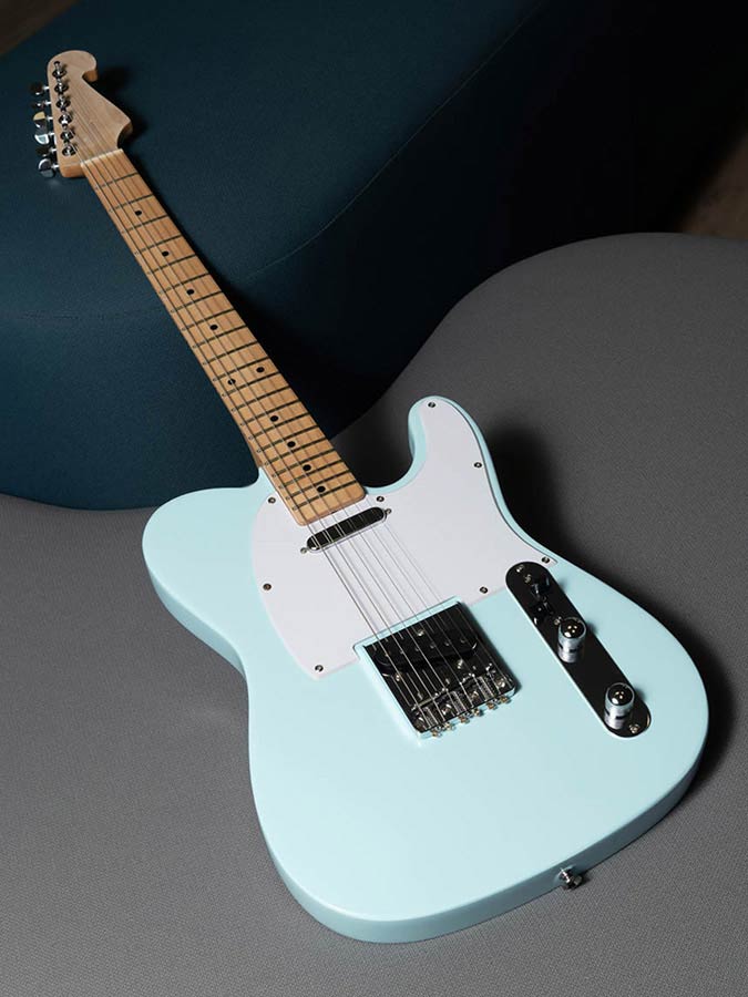 Originally a colour only offered on the 1958 Cadillac, Daphne Blue found its way into the Fender colour scheme in 1960. It first stayed only till 1965, but is now available again on Fender guitars, like many other colours from the Custom Colour era. Daphne Blue is a bit greener and a richer blue compared to the similar Sonic Blue colour.