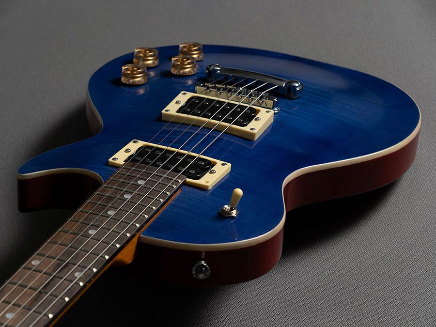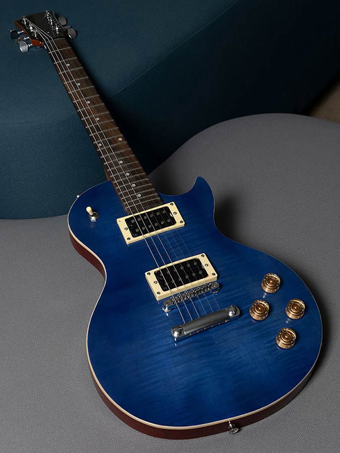 The semi-translucent blue finish reveals the grain of the wood. It's great for use with figured or flamed maple tops as used on the Gibson Les Paul. You can highlight the grain or flamed top of your guitar by applying a black dye or filler and then sand it down to leave marked only the grain. To reach the translucent effect you are looking for, the secret lies in the application of thin even layers until the hue and desired woodgrain are to your satisfaction.