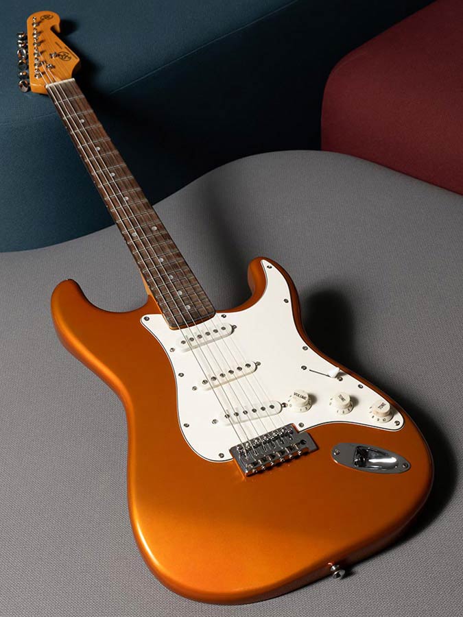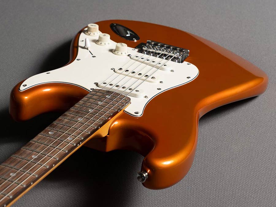 Fender introduced the Candy Tangerine colour to its guitars from 2002 on. It is widely used by the Fender Custom Shop for relic work. It was inspired by the Candy colors of Hot Rod and Custom cars. The Candy colour family however was an earlier concept as it was developed in the mid to late 1950s.