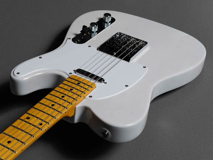 This translucent white blonde finish reminds us of the feminist association with the Hawaiian Mary Kaye. She featured in a promotional ad in which this finish appeared on the guitar, a Stratocaster with gold hardware. This finish was widely used in the 50’s and 60’s.