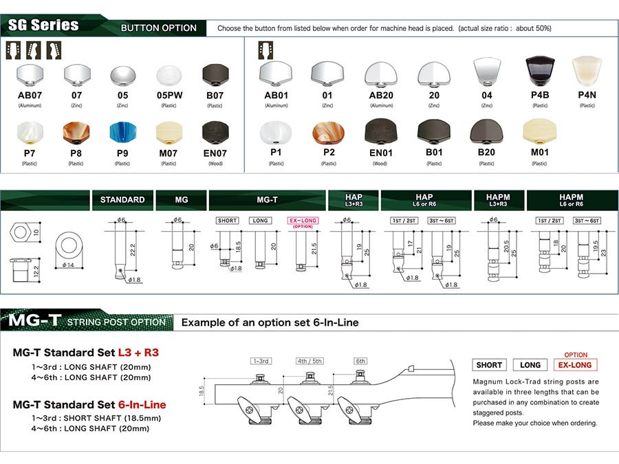SG381 machine heads with Magnum Lock Trad and 07 buttons, 3L3R, chrome