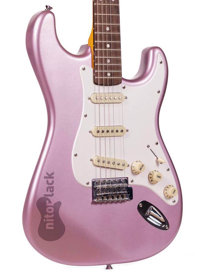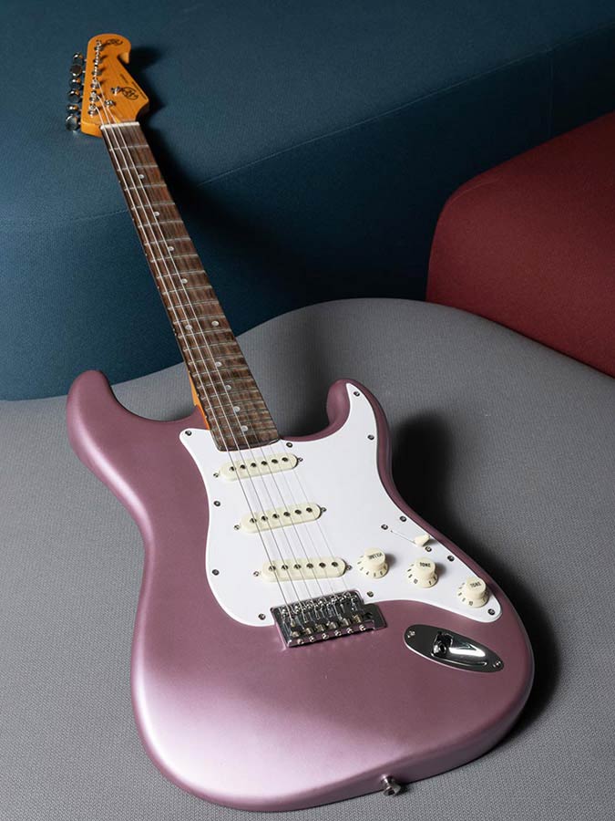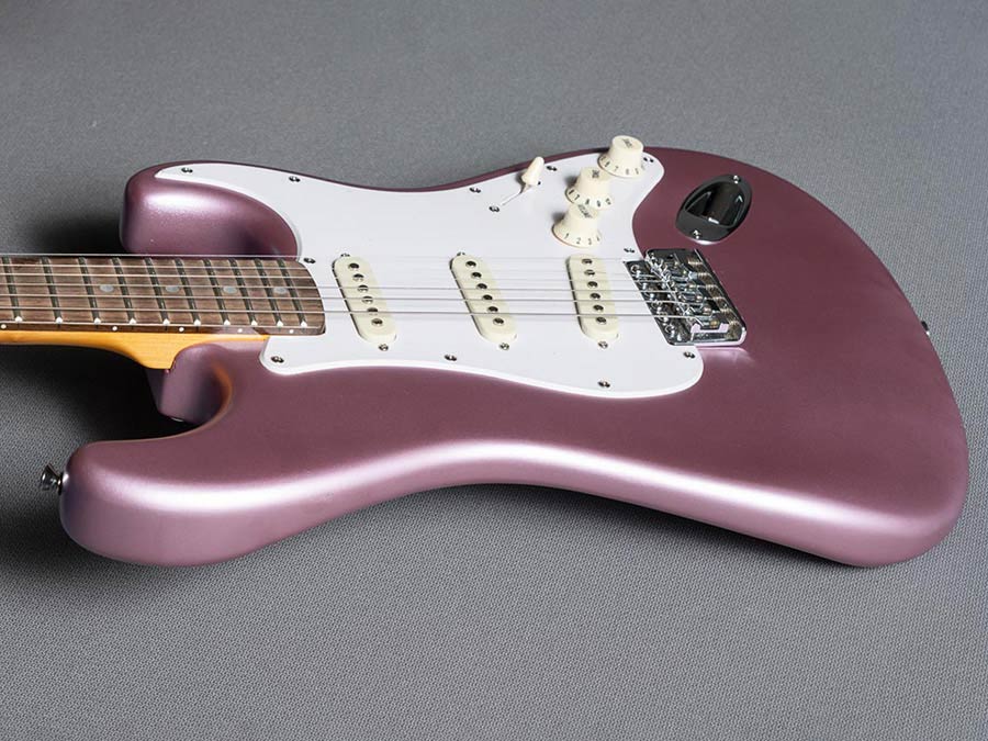 Burgundy Mist was a '59 Oldsmobile colour that was used as a custom colour by Fender from 1960 to 1965. It's a metallic finish with a quite striking lavender hue. This colour also lends itself to using a tinted topcoat over it to create the effect of aging. This will result in a beautiful nearly copper-like hue.